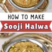 Which semolina to use: Usually, in the store, you will find “fine” and “coarse” varieties of semolina. For Halwa, we use fine sooji.Ratio of sooji to liquid: I use a 1:4 ratio of sooji to liquids in this recipe. This gives a pudding-like texture, preferred in North India. For a crumblier sheera texture, reduce the liquid by 1/2 cup. So, the ratio of sooji to liquid will be 1:3.What to use: Milk or Water to make Suji Halwa? Either water or a mixture of milk and water works, too. When using water, the color will be more brownish. If you use milk, the final Sooji Halwa will look whiter. Milk also gives the halwa a much smoother texture. My mom makes this halwa with just water, which is the traditional way. I prefer to use a combination of milk and water. Hence, in this recipe, I used a 1:3 ratio of milk to water, 1/2 cup of milk with 1 1/2 cups of water.Ghee: Don’t skimp on ghee when making halwa. I have tried with less, and it does not taste as good ๐Roasting Sooji: Be patient when roasting the semolina; it takes time. Roasting, along with ghee, definitely helps to speed up the process. Why boil the liquids separately? Boiling the liquids separately helps make softer, perfectly cooked halwa, so don’t skip that step. It also helps to do the steps in parallel.Optional ingredients: Nuts, saffron, and cardamom are optional. Add or skip based on your taste and availability.Serving: This halwa is usually served warm. To reheat, place in microwave for 15-30 seconds.